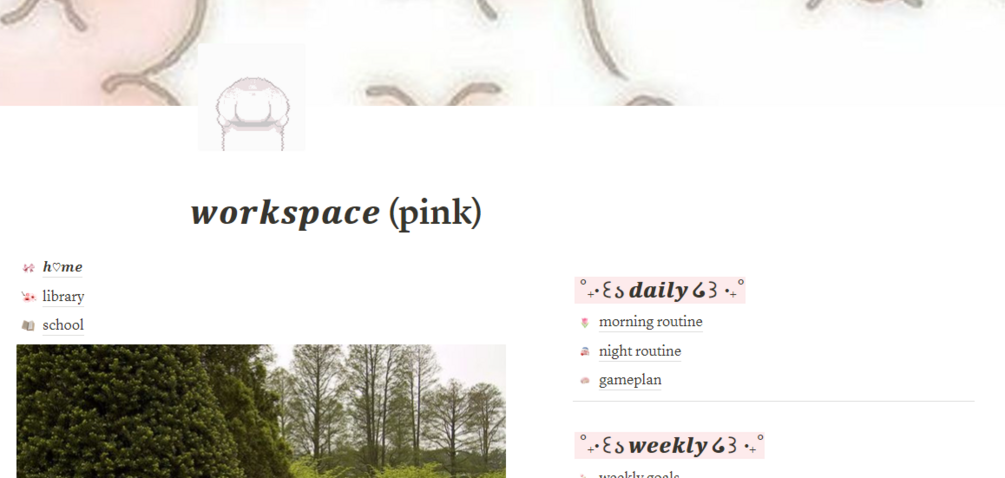 You get a Notion template with: pages where you can organize your schedules; pages to track school stuff; pages to set goals (of any kind) and more!